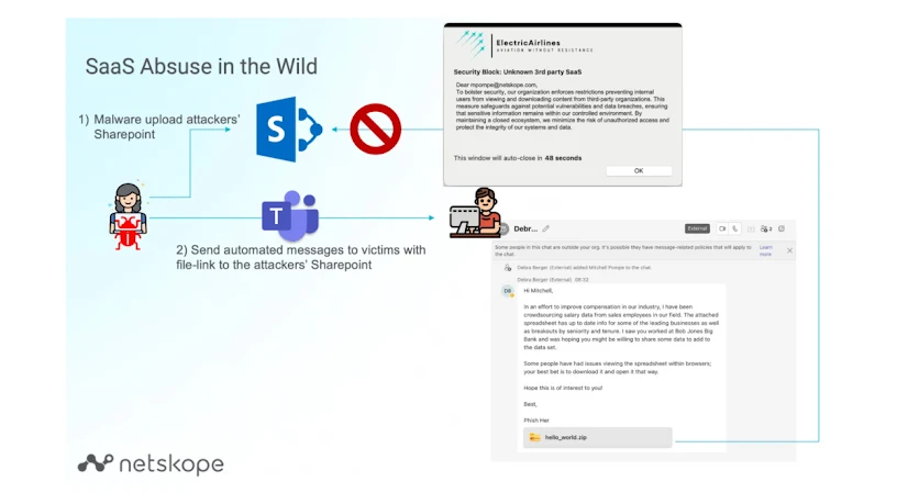 The Netskope Threat Labs Stats for June 2023 blog revealed that 60% of all malware downloads through HTTP/HTTPS were traced back to popular cloud apps. Additionally, 32% of SaaS-delivered malware originated from OneDrive and SharePoint, indicating the need for strengthened security measures on these platforms. The notion that SaaS is considered a ”trusted source” directly contradicts the fundamental principle of zero trust.