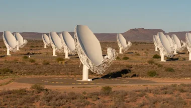MeerKAT, originally the Karoo Array Telescope, is a radio telescope inaugurated in 2018, consisting of 64 radio dishes that are 13.5m in diameter and spread over an area of 8km in the Northern Cape.