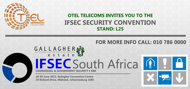 OTEL Telecoms, a licensed national telecoms service provider of VOIP and broadband infrastructure, today announced the company will exhibit at IFSEC 2013 in booth L25. IFSEC's annual security industry exhibition for customers, partners, media and industry analysts is being held from 18 to 20 June at the Gallagher Convention Centre, in Midrand.