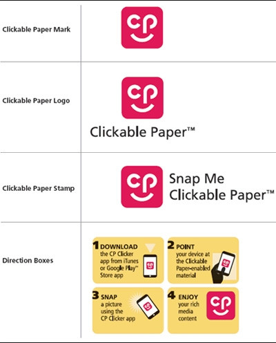 Users simply download the free Clickable Paper app and point their smartphone or tablet at the Clickable Paper-enabled material and take a picture. The app identifies the material and automatically initiates multichannel media on the device.