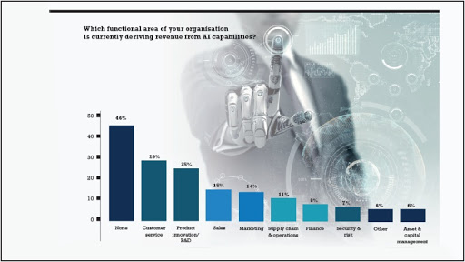 Customer service leads the way when it comes to driving revenue from AI capabilities, followed by the product innovation and R&D function and operations.