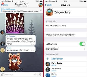 New features added to the groups include pinned messages, allowing group admins to inform members of the most important messages, and making the supergroups public, enabling anybody to view the group's entire chat history.