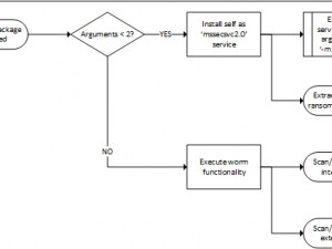 Of note is that the worm functionality is only activated when the malware is started in service mode (i.e. with two or more arguments):